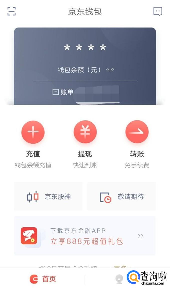 绑定后,重新登录京东钱包,可以看到有充值、提现、转账这些菜单,这些服务都需要实名认证后才可以开通,也就是说进行实名认证和绑定银行卡后,京东钱包网银便可以开始使用了。