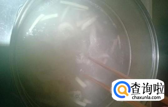锅里煮一锅水,将牛肚放入,再放入苏打粉和发酵粉,这时候你会看到水中有气泡产生。