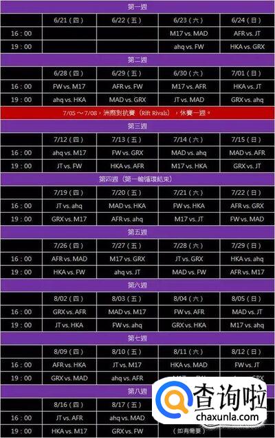 赛制,BO3(总场次为3场 俗称三局两胜),由八支战队进行为期八周共计两轮互相对战的循环赛