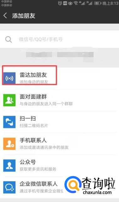 弹出的界面,就会雷达扫描,当扫描到朋友的时候,我们点击添加就可以了。