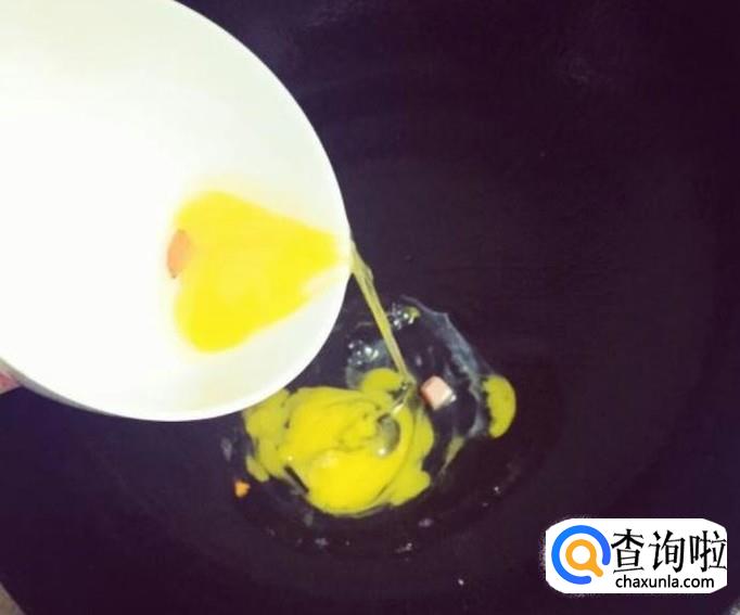锅里热油,油温凉至八成热时,倒入鸡蛋,煎好