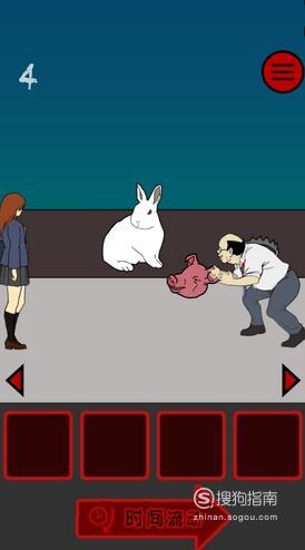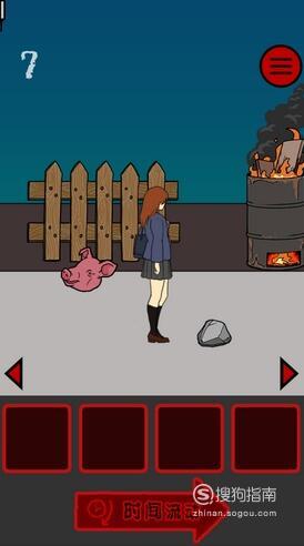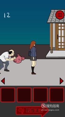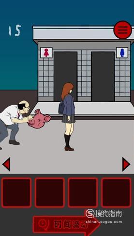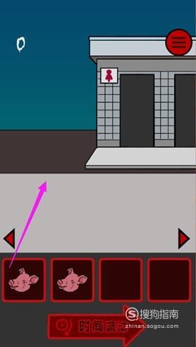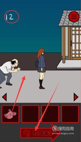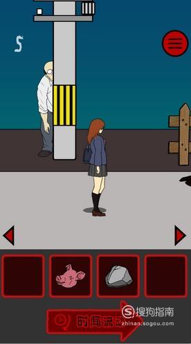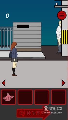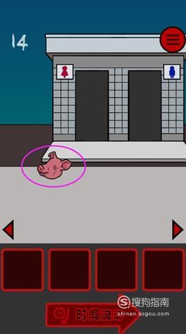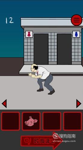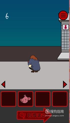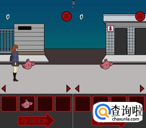 在女孩面前的位置放猪头,女厕所左边的位置放猪头,然后不断点击时间流动即可顺利过关。