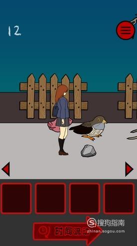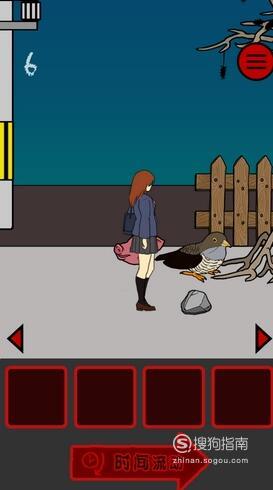 向前走6步,然后在鸟的位置放石头,女孩的位置放猪头,然后不断点击时间流动即可顺利过关。