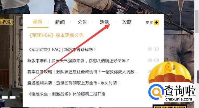 然后关注最新的活动动态,不过这个九月的活动是无法领取的,因为没有武器皮肤的活动,所以大家多关注活动中心,如果你看见有跟着活动去做就能领取。