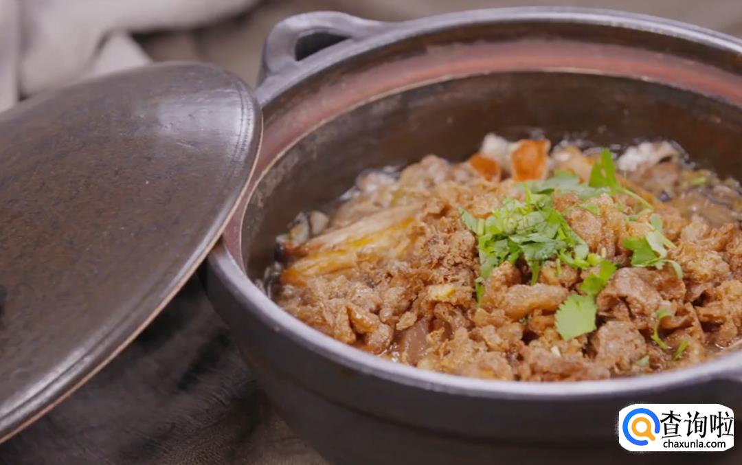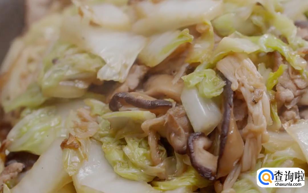 起油锅,用炸蛋酥的猪油下葱丝,依次放入虾米、香菇、猪肉丝、金针菇和白菜丝翻炒,加入酱油和糖炒匀。