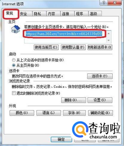在“internet选项”中,如图所示,常规选项卡下,把主页的地址修改一下,修改成about:blank或者自身习惯的网址即可。修改完以后点击“应用”。