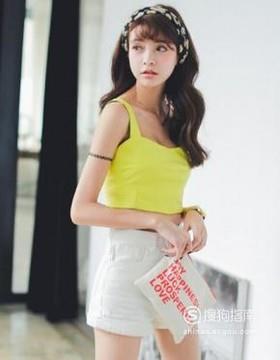 白色短裤搭配吊带背心,夏天穿,再凉快不过了,而且还能显出女性的活泼与可爱,再加上鲜艳的背心颜色,更给人亮丽的感觉,这种穿法特别适合年轻的女孩。