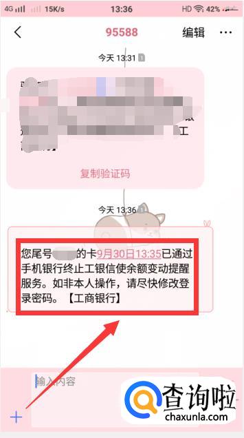 接下来手机上面就会收到短信,说已通过手机银行终止工银信使余额变动提醒服务,这就说明手机关闭短信提醒服务成功啦。