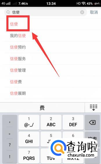 在【首页】的搜索栏中,输入【信使】,点击搜索。