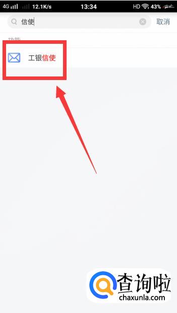 然后就会搜索出【工行信使】,再点击进去。