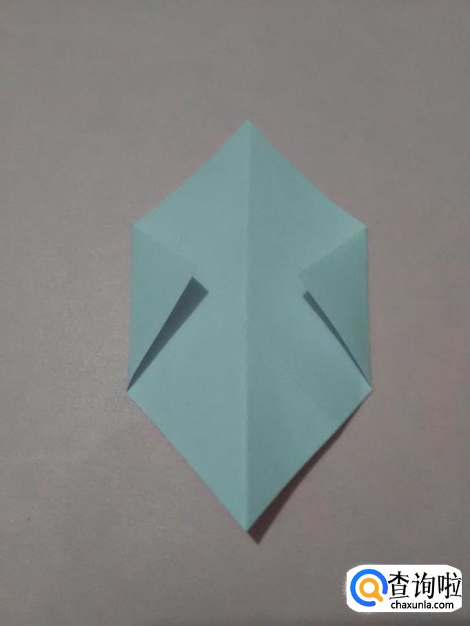 把纸翻个面,反过来,两侧的小角就是熊猫的两只耳朵。