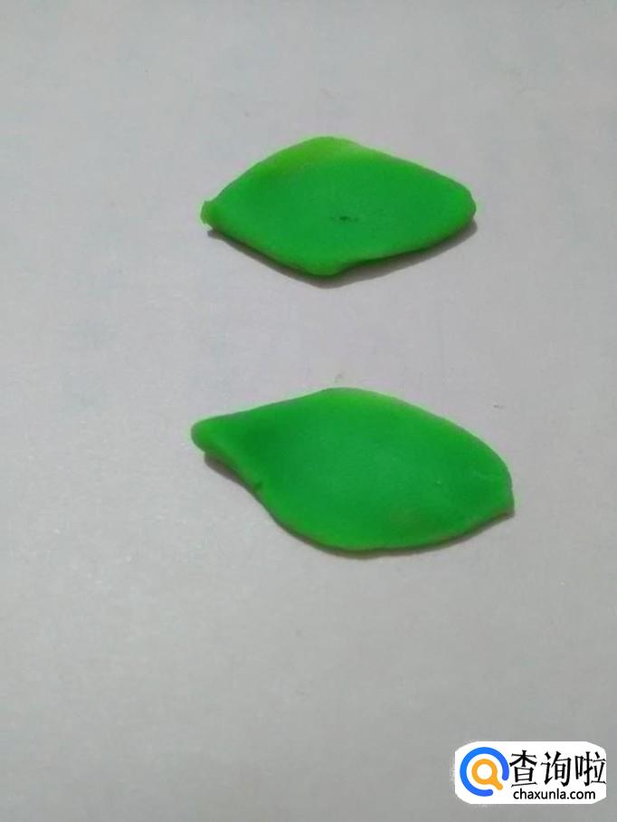 用绿色捏两片两头尖中间宽的叶子。