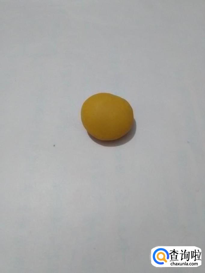 将桔色彩泥团成一个球,再稍微按扁一些。