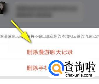 这时会弹出一个小面板,在面板中点“删除漫游聊天记录”;又弹出一个对话框,直接点确定。那么,该好友的聊天记录全部彻底删除。