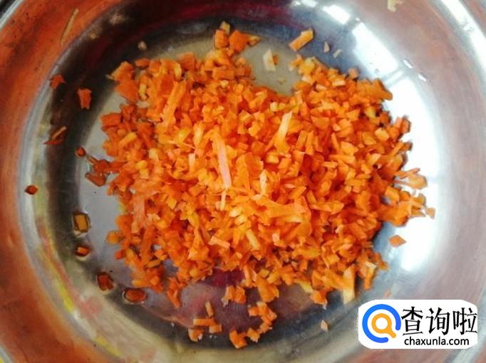 取一根胡萝卜,用清水把胡萝卜洗净,然后用刀切去胡萝卜头尾,先把胡萝卜切丝,然后切成胡萝卜待用。