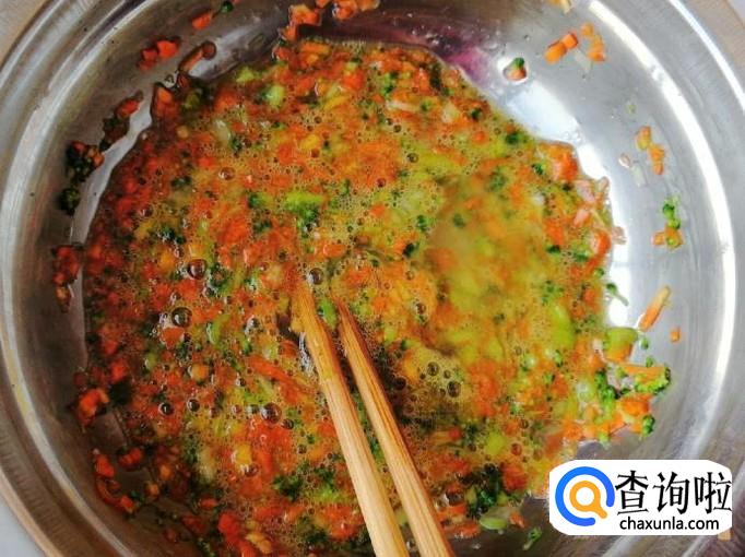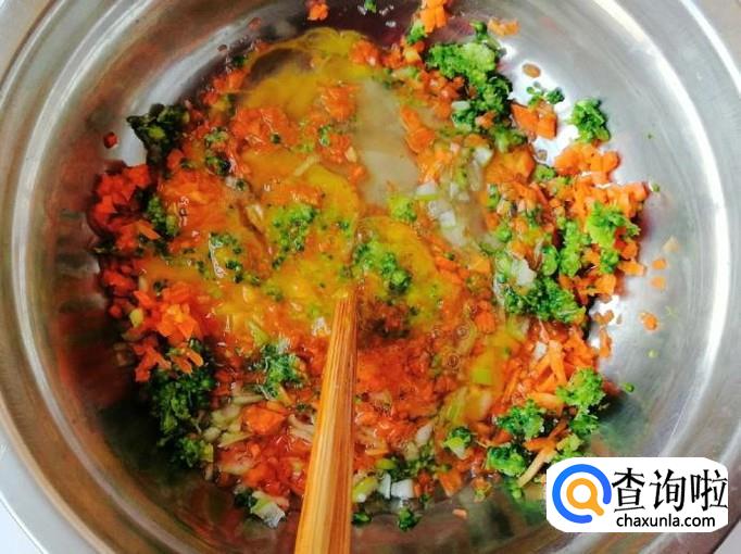 一个剩馒头,适量西兰花末、胡萝卜末、葱末、鸡蛋、食盐、五香粉