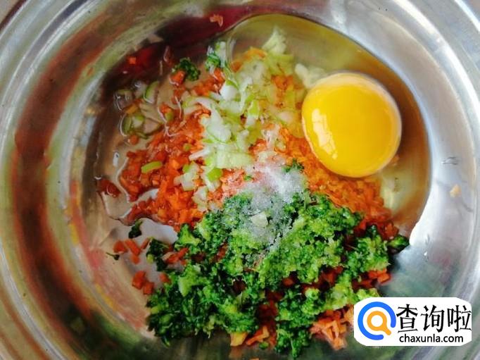 在菜中加入适量食盐,然后取一个新鲜的鸡蛋,用清水把鸡蛋洗净,然后把鸡蛋磕入碗中待用。