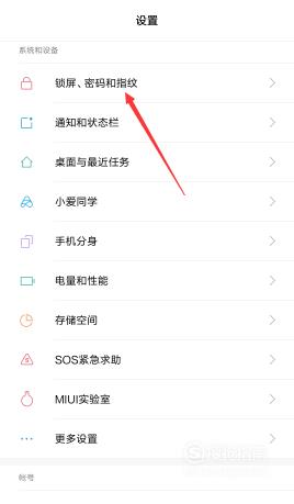 然后在【设置】中找到【锁屏、密码和指纹】。