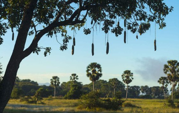 的确不错,这种香肠树虽然不是真的结香肠但是它结的果实外形特别的像香肠,这种生长在辽阔的非洲草原上高大树木,每到结果的季节,就会挂满了一个个形似香肠的果实。