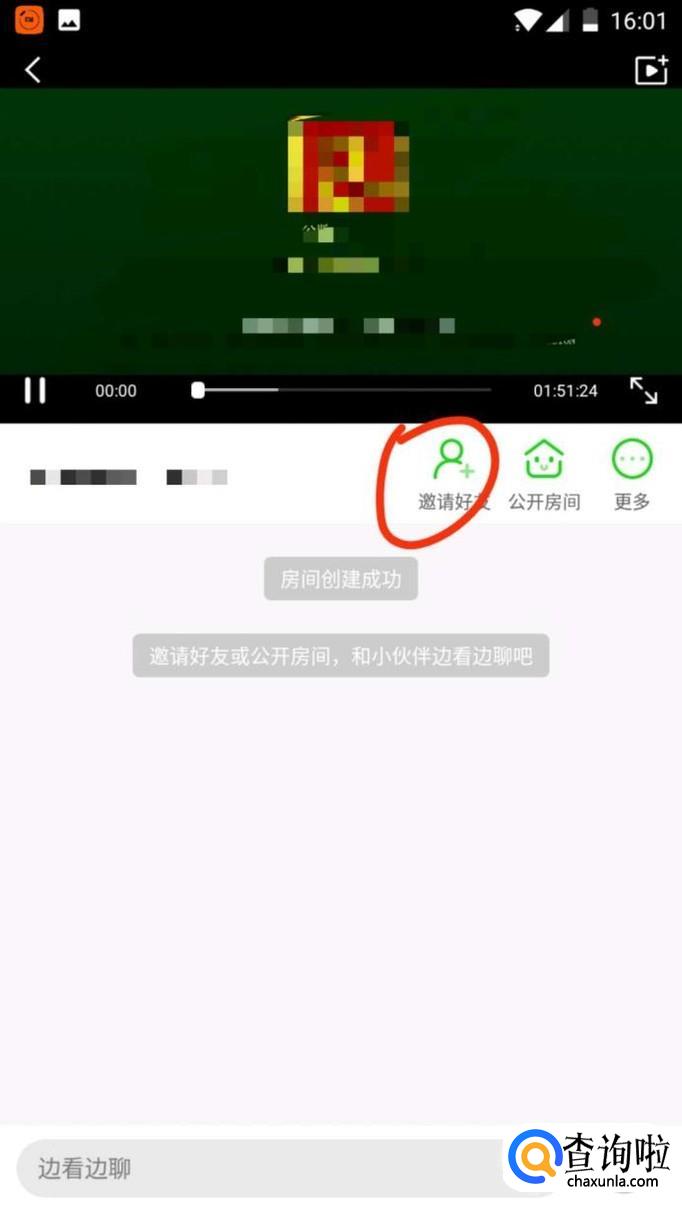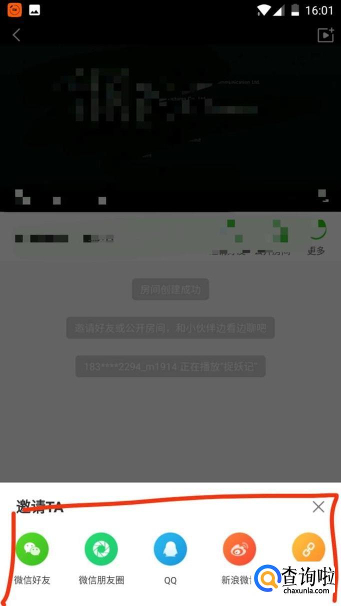 点击“创建房间”,就会看到手机正在播放你的电影,点击“邀请好友”