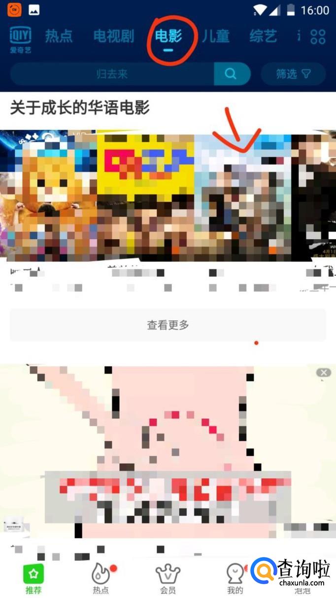 在“爱奇异”上方点击电影,选择其中一场电影,点击进入