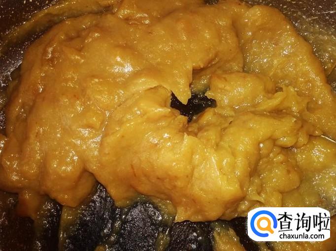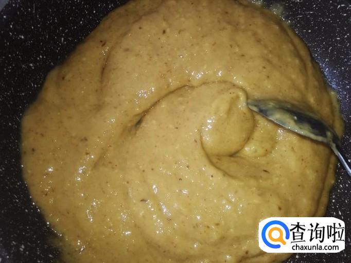 打成果酱后,倒到锅里。
