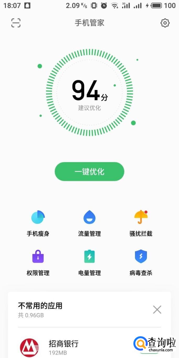 进入系统自带的手机管家界面,在选项中点击“一键优化”