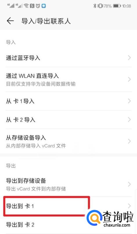 点击后,在导出的下方,选择需要导出到的SIM卡。