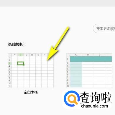 接着,弹出一个面板,在面板中,鼠标点击:空白表格