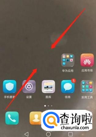 手机解锁,进入手机桌面,按图上的箭头滑动屏幕。