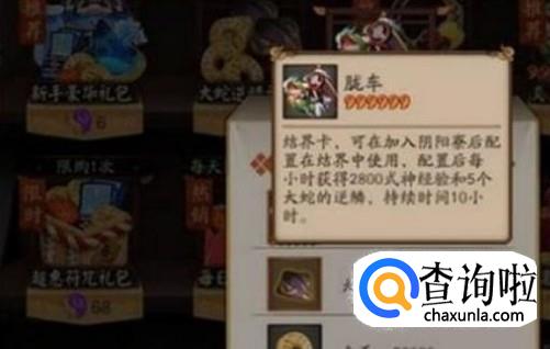 在结界中装备六星胧车结界卡,即可得到大蛇的逆鳞的奖励,如图所示。