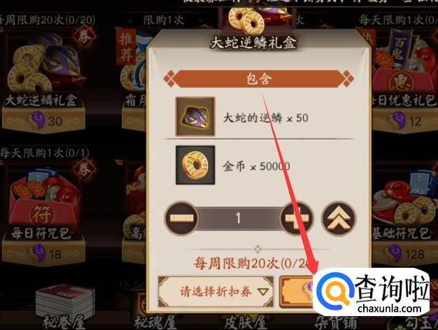 进入之后,进入商城可以找到大蛇逆鳞离合,通过魂玉即可将其购买下来。