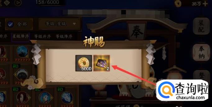在御魂奉纳页面,将五星御魂或者六星御魂奉纳,可随机得到大蛇的逆鳞,如图所示。
