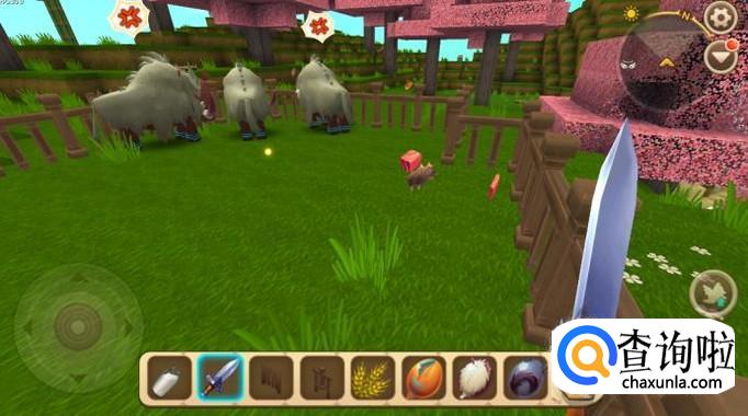 我们应该先围一个围栏,然后用小麦的种子去找牛,把牛吸引到围栏里,至少要吸引两头牛进入到围栏里。