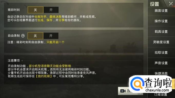 接着我们在设置界面中找到录像设置,点击进入,它有精彩时刻和自由录像两种方式法可以录像截屏。