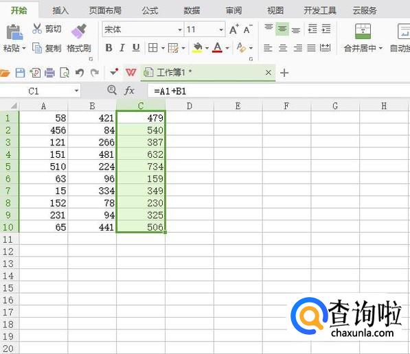 即可在C列对应的单元格中快速得到A、B两列数据做加法运算的结果。