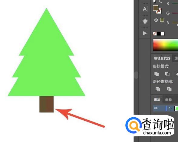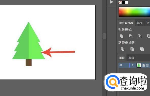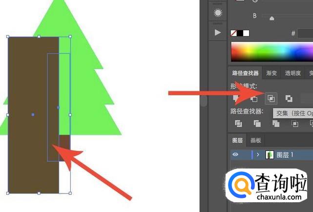 之后点选阴影部分以及粘贴出来的树干图层,在右侧“路经查找器”中点击“交集”,即可保留两个形状之间相交的部分。