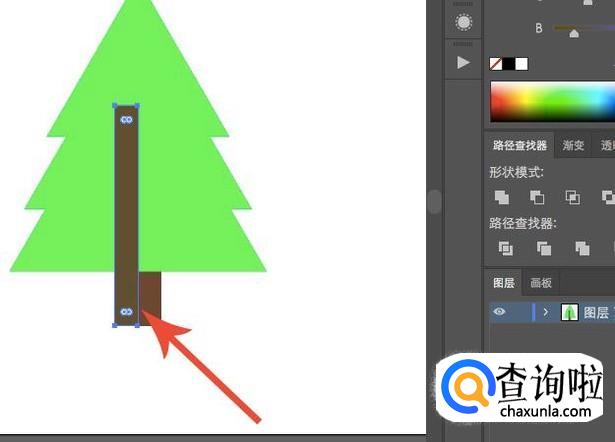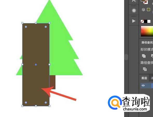 接下来就是我们绘制阴影的方法了,先以树干为例,选择“矩形工具”在需要添加阴影的位置绘制一个矩形,颜色要比树干深。