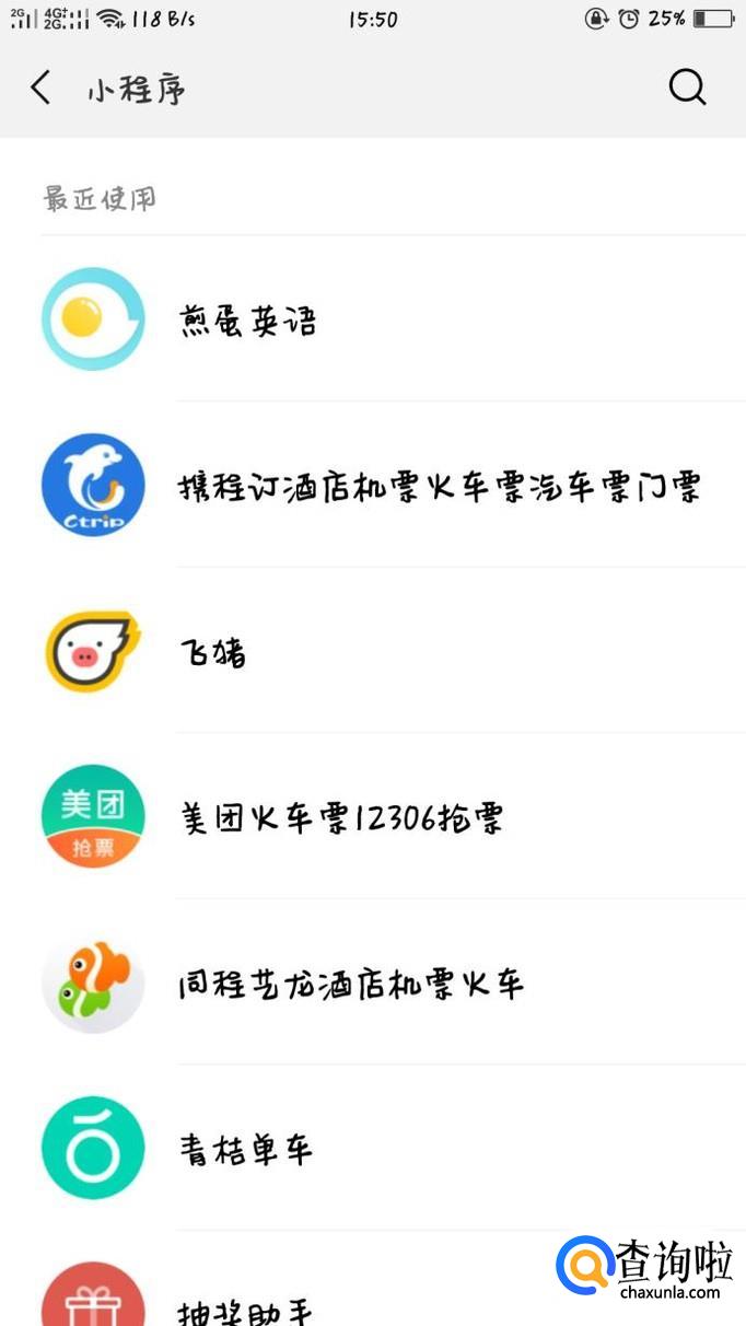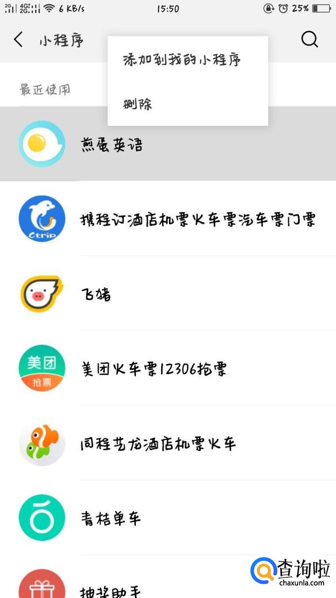 进入最近使用的小程序,选择想要删除的小程序,此处以煎蛋英语为例。