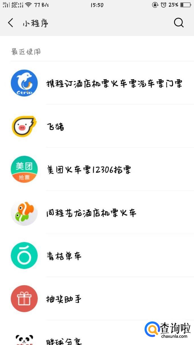 下滑微信聊天界面,找到小程序上方的最近使用,点击即可。