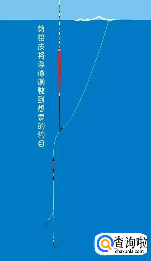 开始剪铅皮,直到浮漂露出水平面四到五目(露几目就是所胃的调几目)。