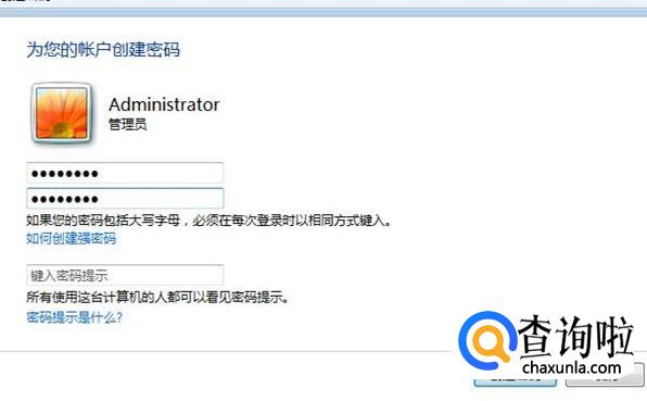 在界面里输入两遍密码,再点下面的“创建密码”。
