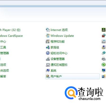 然后在控制面板里找到“用户账户”,点击进入。