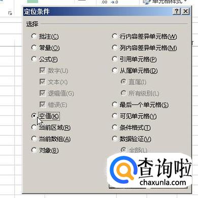 转到了定位条件的对话框,选中:空值;再点确定。