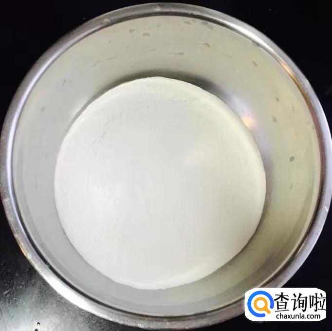 案板铺撒干面粉把醒好的面团用擀面杖擀压成圆形厚面皮