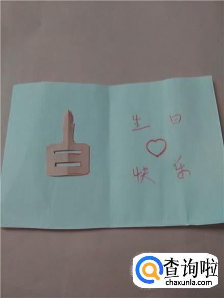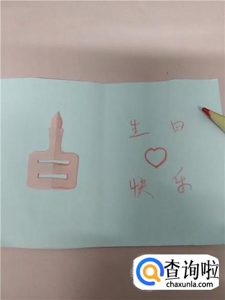 用红笔在白纸的右边写上生日快乐,并且画一个小桃心,生日贺卡就做好了。