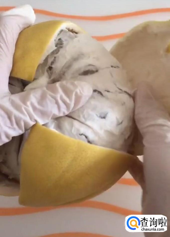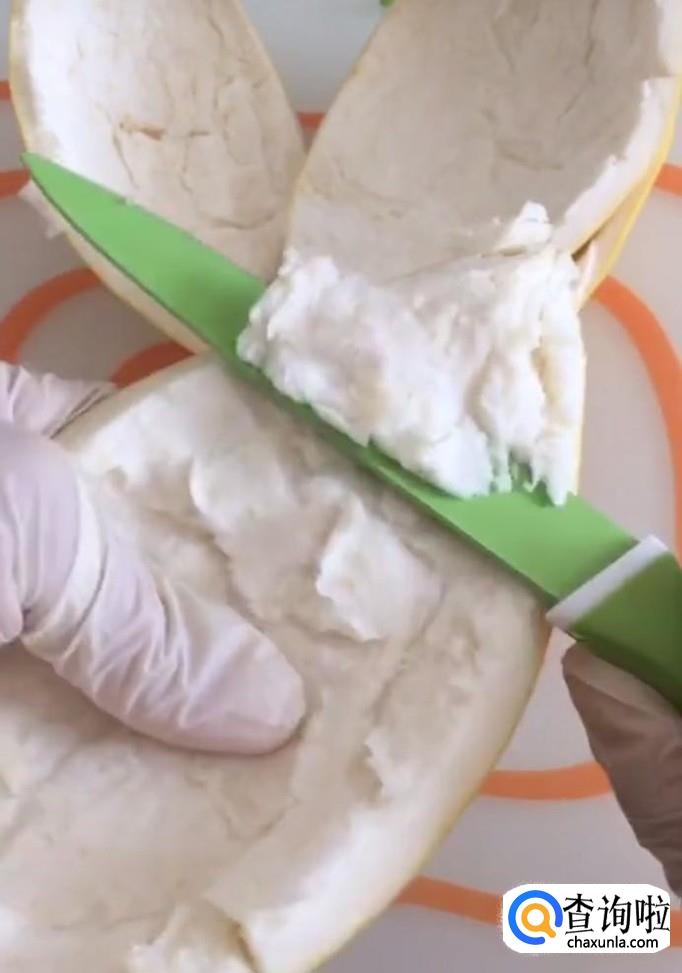 首先,我们将准备好的柚子用盐搓洗几遍,洗掉上面的蜡