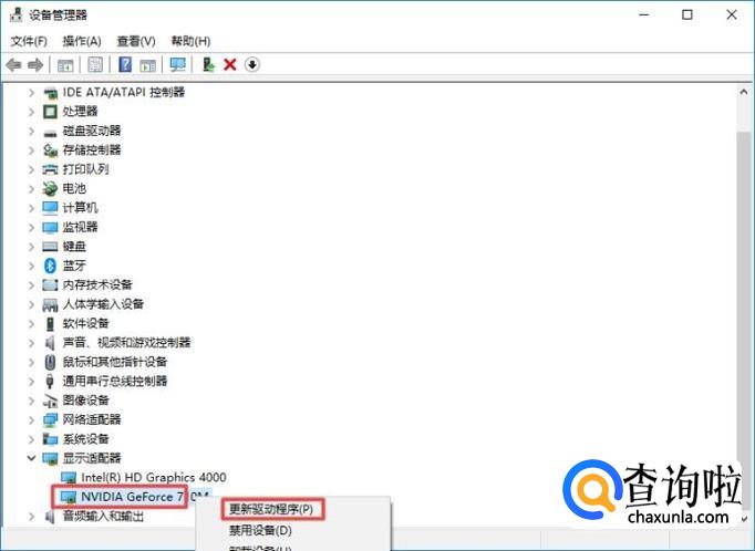 然后我们找到NVIDIA驱动,之后我们右击选择更新驱动程序就可以更新了。相信大家现在都会了。