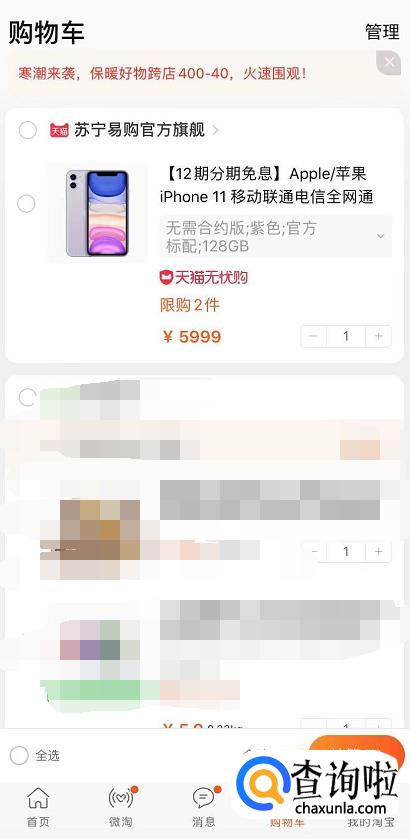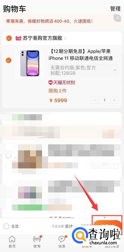 勾选你要购买的商品,然后点击“结算”。