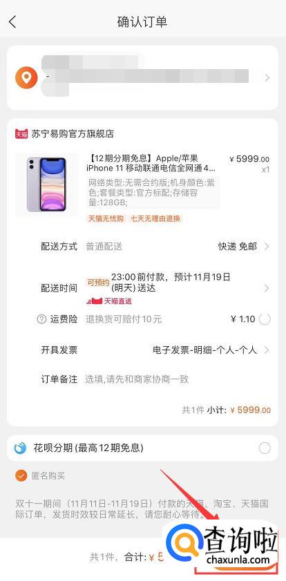 选择正确的地址和电话之后,点击“提交订单”即可。